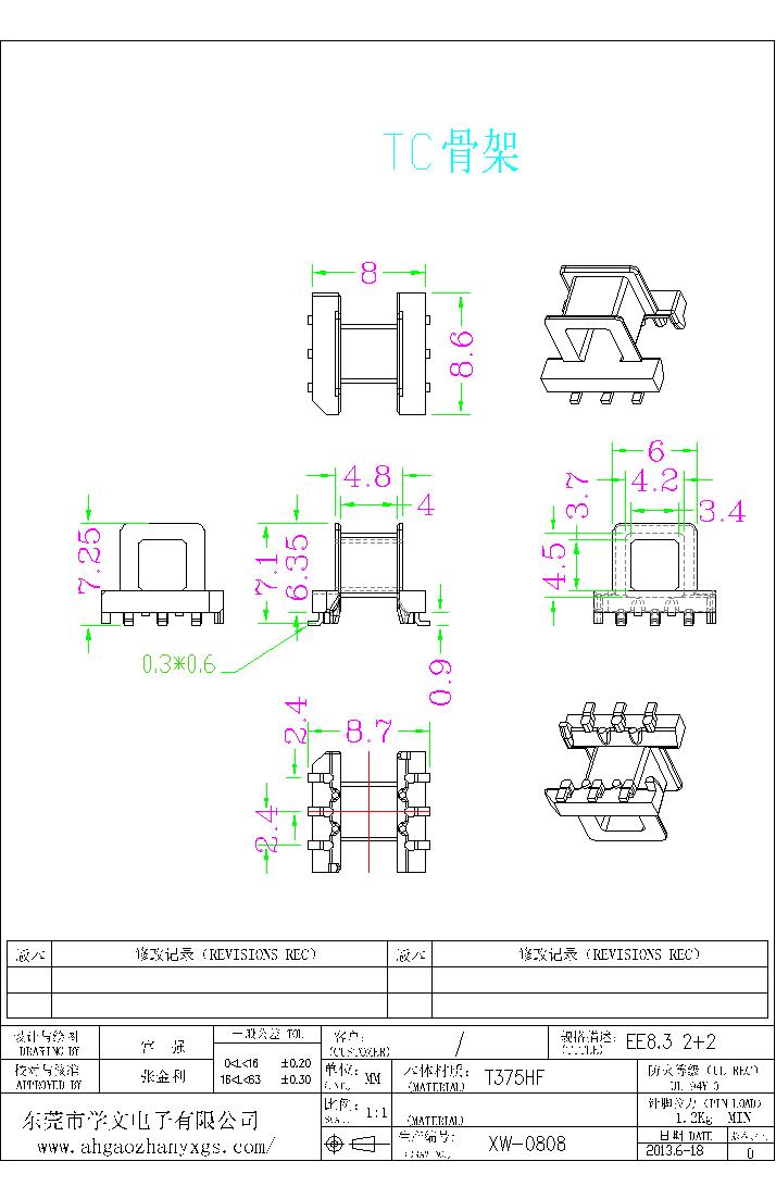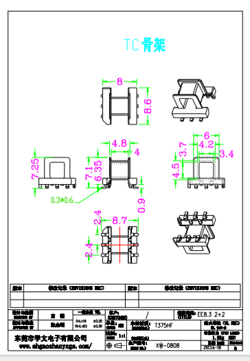 XW-0808 EE8.3 2+2 高頻電木變壓器骨架