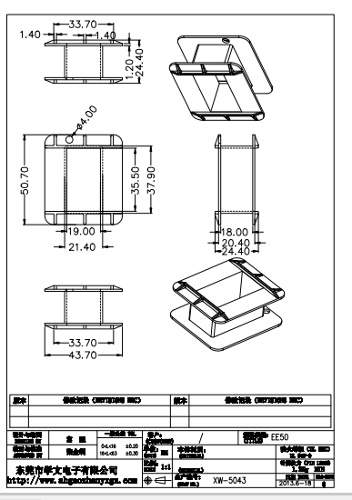 名稱:XW-5043 EE50 低頻塑膠變壓器骨架